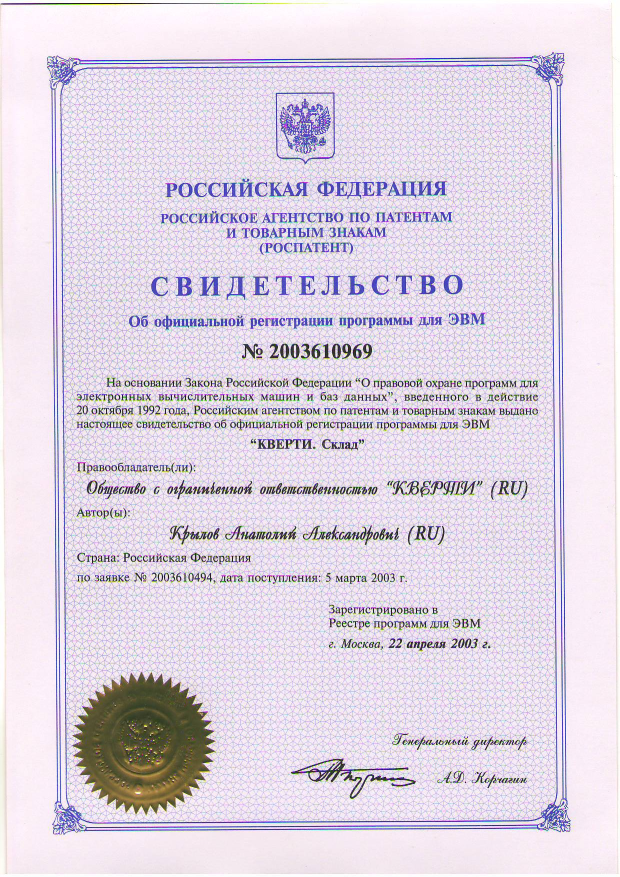 Номер свидетельства о государственной регистрации: 2003610969